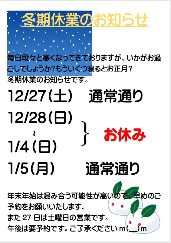 冬期営業日のお知らせ